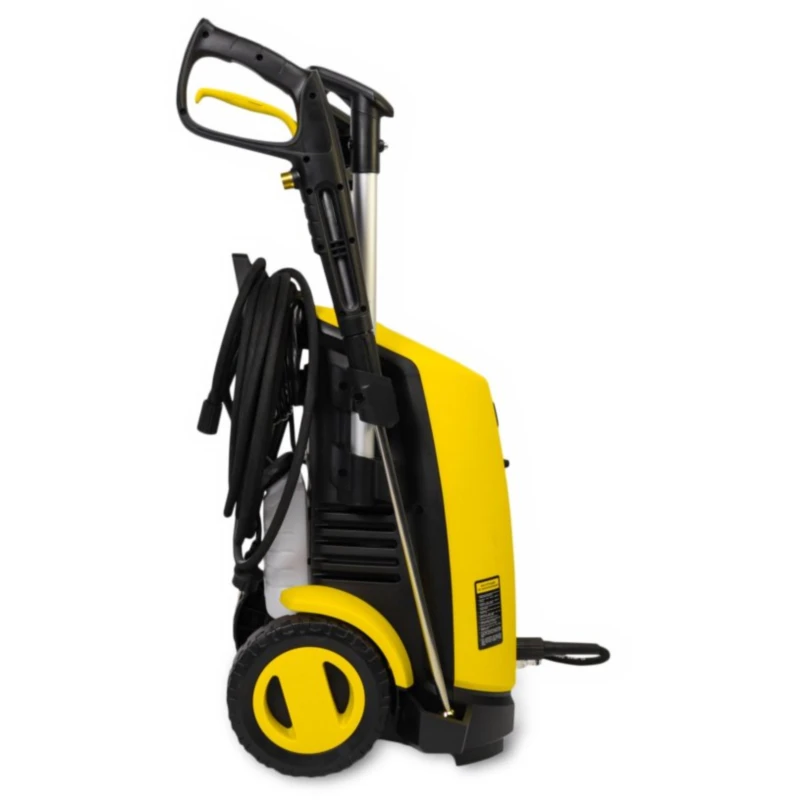 Мойка CHAMPION HP3300 собрана на прочной стальной раме с двумя большими транспортировочными колесами и эргономичной складной ручкой, что обеспечивает легкое перемещение по территории. Асинхронный двигатель не требует технического обслуживания и отличается долгим сроком службы и пониженным уровнем шума по сравнению с коллекторными аналогами. Помпа выполнена из износостойкого силумина. В комплектацию входит все необходимое для начала работы: сам аппарат, пистолет с регулировкой, 10-метровый армированный шланг высокого давления, штанга с быстросъемным соединением, набор из 5 наконечников (0°, 15°, 25°, 40°, грязевая фреза), фильтр тонкой очистки для забора воды из емкости, игла для прочистки форсунок и держатели для пистолета и шланга. Устройство готово к использованию сразу после подключения к сети и источнику воды.