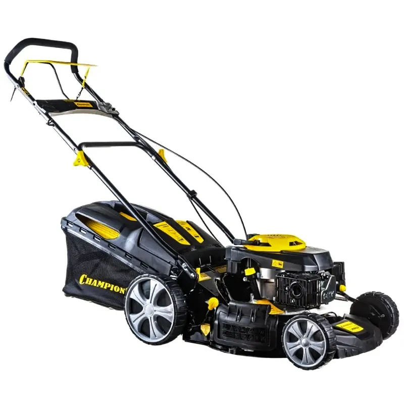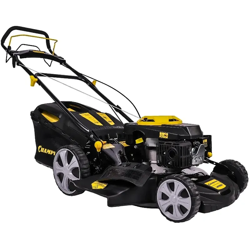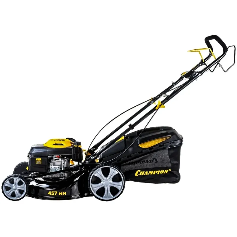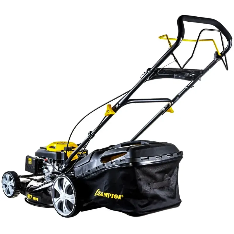 Бензиновая газонокосилка CHAMPION LM4627 представляет собой самоходную модель, поддерживающую четыре режима кошения. Уровень среза можно легко регулировать в диапазоне от 25 до 55 мм одним рычагом, в зависимости от высоты травы. Машина оборудована четырехтактным двигателем мощностью 3,5 л.с., который заводится при помощи ручного стартера. Благодаря остро заточенному ножу и оптимальной ширине среза 46 см косилка чисто обрабатывает как узкие дорожки, так и обширные участки, не допуская пропусков.