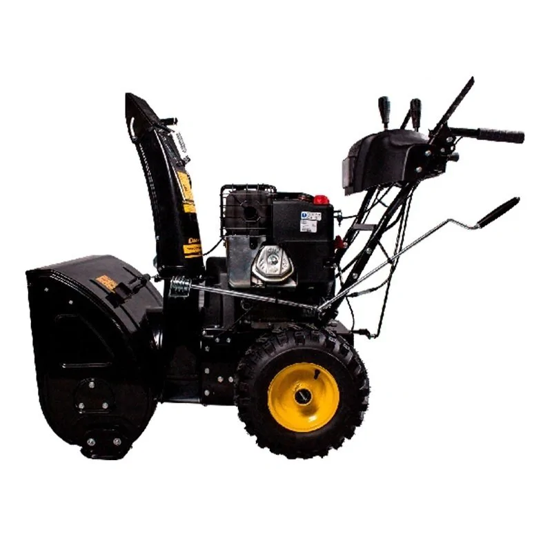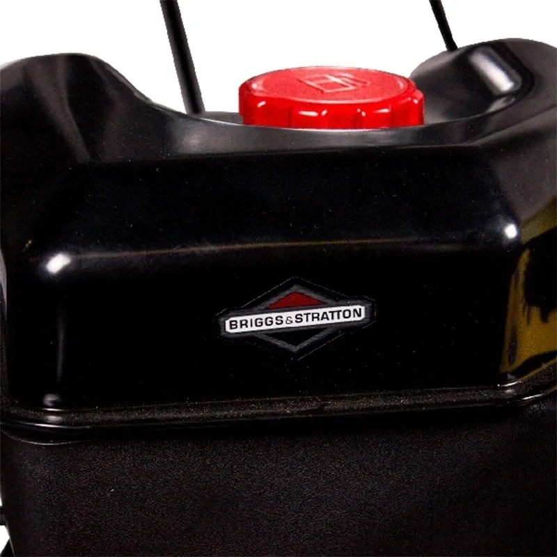 8-ступенчатая коробка передач позволяет адаптировать бензиновый снегоочиститель под конкретные условия работы и скорость уборки. Высота захвата составляет 54,5 см, что подходит для чистки глубокого снега. При необходимости можно увеличить или уменьшить обороты двигателя с помощью рычажка на корпусе. Функция поможет ускорить процесс уборки или снизить потребление бензина.