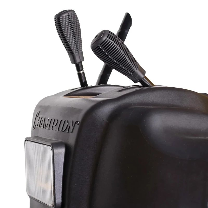 На боковых сторонах ковша расположены направляющие лыжи. Полозья снегоотбрасывателя Champion ST1170E устанавливаются в одно из нескольких доступных положений на выбор. Это нужно для изменения расстояния между ковшом и очищаемой поверхностью. Регулировка позволит избежать повреждения декоративной дорожки или будет способствовать более глубокому захвату снежного слоя.