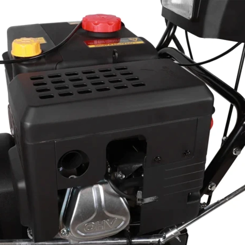 Шнек зубчатый, а значит, агрегат легко справится с уборкой тяжелого снега. Для комфортной работы в непогоду снегоуборщик оборудован фарой и обогревом рукояток.