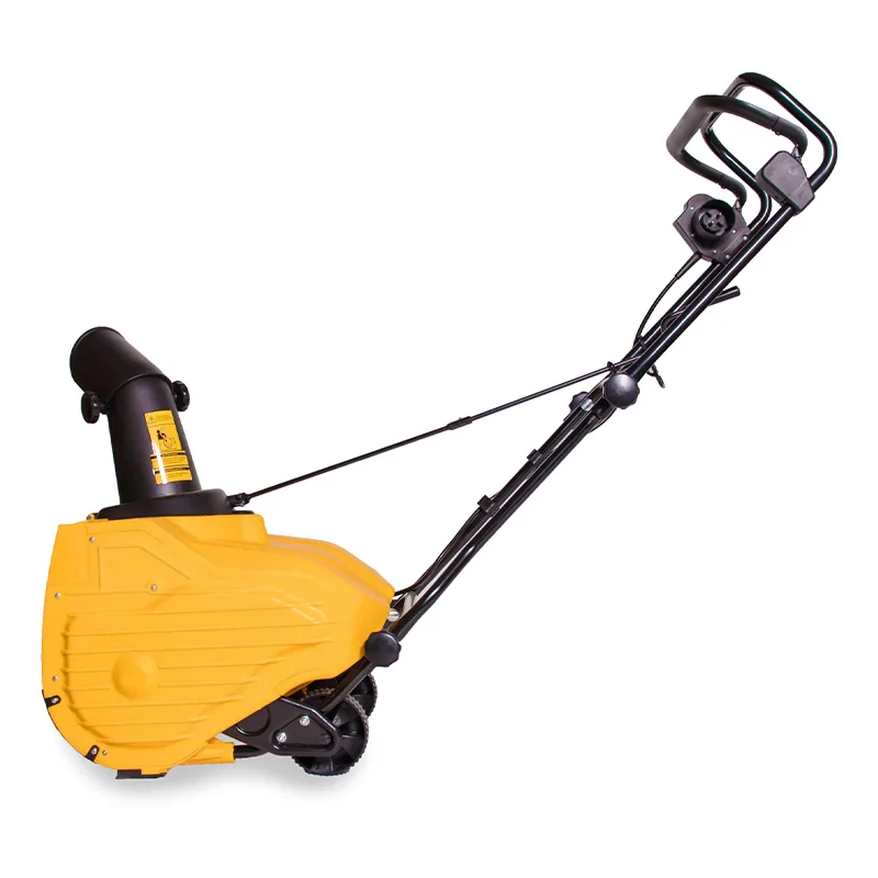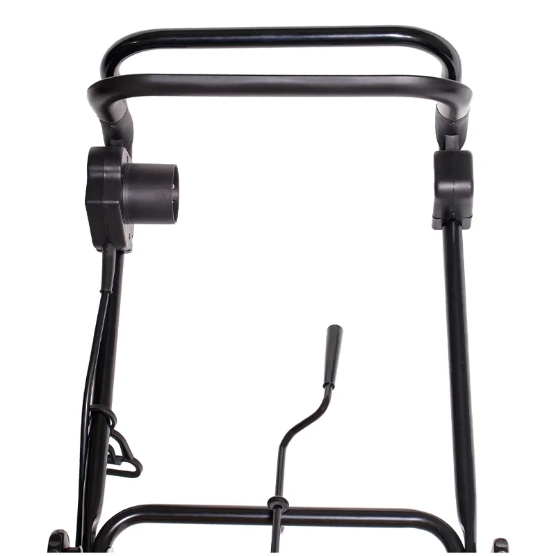 Управление вынесено на рукоятку. Для запуска необходимо лишь подключить устройство к сети и нажать на кнопку, что ускоряет и упрощает начало работы. Благодаря складной конструкции рукоятки, снегоочиститель легко помещается в стесненных условиях.