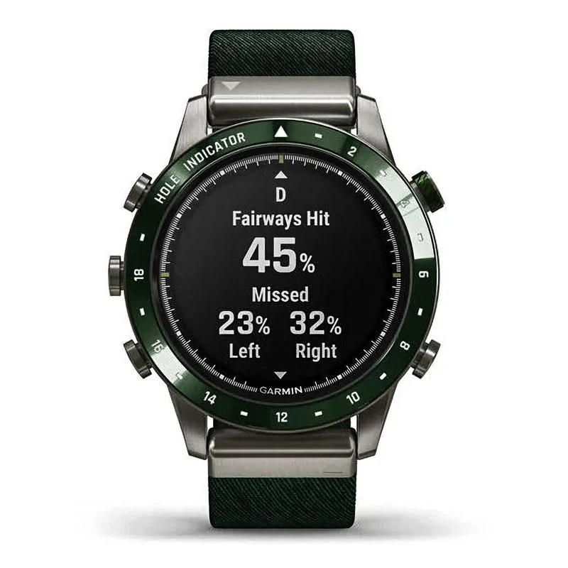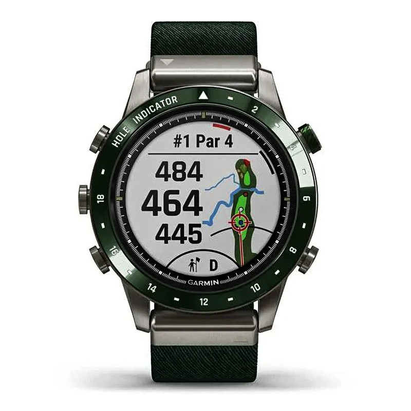 Это роскошные часы с выпуклым сапфировым стеклом, постоянно включенным дисплеем и 18 отметками в виде лунок на кольце вокруг циферблата наглядно демонстрируют вашу приверженность гольфу.
