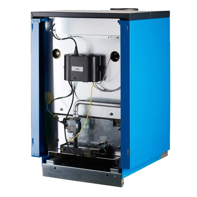 - Испытанный и надежный отопительный котел с чугунным теплообменником и газовой горелкой атмосферного типа