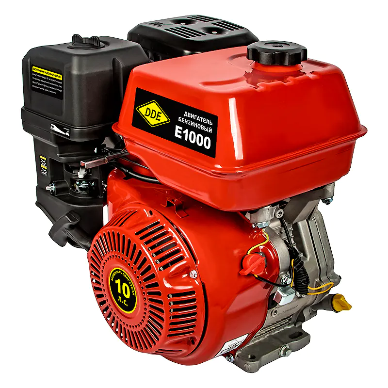 Двигатель бензиновый 4Т E1000-S25 (10 л.с., 322 куб. см, к/в 25 мм, шпонка) DDE 794-661 предназначен для использования в качестве привода на садово-парковой и строительной технике, например: мотоблоках, мотокультиваторах, снегоуборщиках, мотопомпах и виброплитах. Изделие отвечает современным техническим стандартам качества, обеспечивая долгий и безопасный эксплуатационный период. Не предназначен для коммерческой деятельности и деятельности, связанной с извлечением выгоды. Данные модели двигателей рекомендованы в качестве силового агрегата с наработкой до 300 часов в год. Увеличенный бак 6,5 литра. Вал двигателя 25 мм. Воздушный фильтр, датчик уровня масла, ручной стартер. Целевая аудитория - фермеры, изготовители техники малой механизации, картов, мотособак и прочих изделий с бензоприводом. Свеча зажигания DDE - LR7YC.