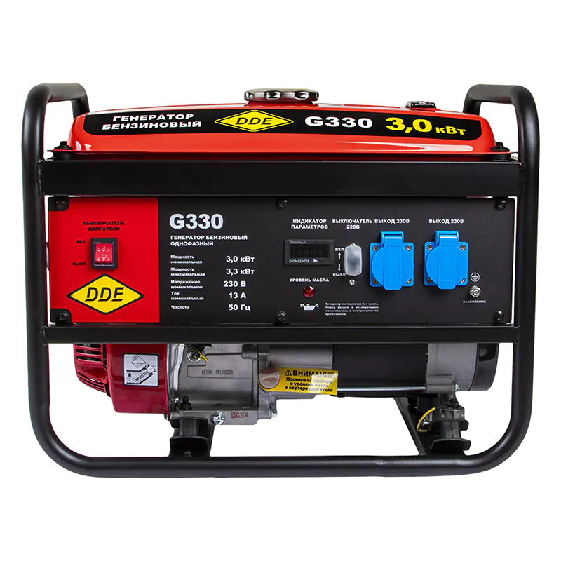 Бензиновый генератор DDE G330 используется для питания электроприборов и инструментов в случае аварийного отключения электроэнергии или недоступности центральной электросети. Устройство позволяет подключать технику с суммарной мощностью до 3,3 кВт, имеет две розетки 220 В.
