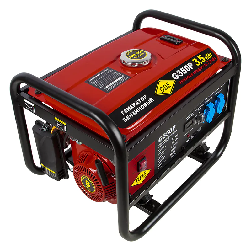 Бензиновый генератор DDE G350P разработан для питания однофазных потребителей суммарной мощностью 3,1 кВт. Для простого запуска мотора предусмотрен электрический стартер. Модель поддерживает функцию AVR.