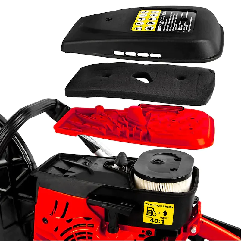 Инструмент не требует сложной подготовки к запуску. Сперва вам нужно залить топливо. Подойдет бензин АИ-92, а также масло DDE для 2-тактных моторов с артикулом 909-525 или 909-532. Для приготовления топливной смеси понадобится отдельная канистра. Соотношение должно соответствовать 1:40. Вместительный топливный бак объемом 1000 мл способствует длительной работе без остановки. После заправки необходимо обеспечить подачу воды для бензореза. Здесь всё просто: возьмите емкость для жидкости и присоедините шланг к штуцеру.