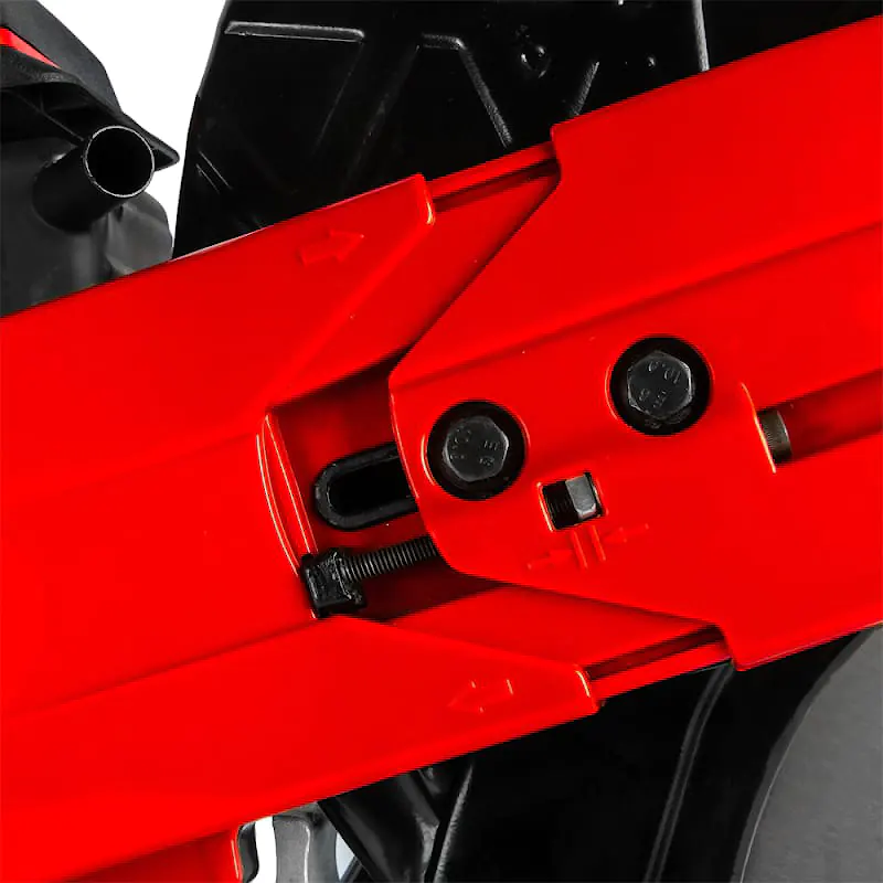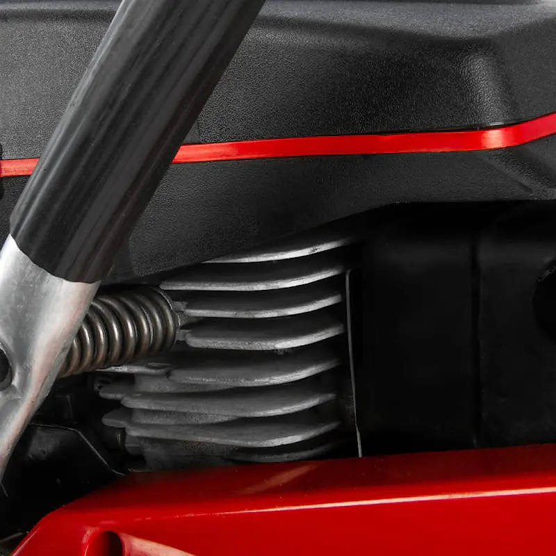 Режущий диск огражден защитным кожухом. Вы всегда можете настроить его положение самостоятельно при помощи отдельной ручки. Кожух нужно устанавливать таким образом, чтобы его задняя часть не касалась материала, который вы собираетесь резать. За счет двух держателей бензорез DDE GS 400-16 удерживается обеими руками, что позволяет избежать сильной отдачи. При этом передняя рукоятка оснащена нескользящим покрытием для крепкого хвата.