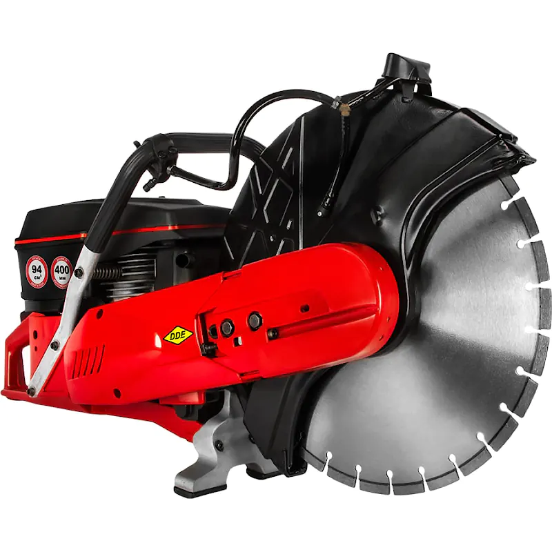 Бензиновый ручной резчик DDE GS 400-16 предназначен для резки различных материалов: асфальта, бетона, камня, кирпича, а также металла. Для работы подойдет диск диаметром 400 мм, который приобретается отдельно.
