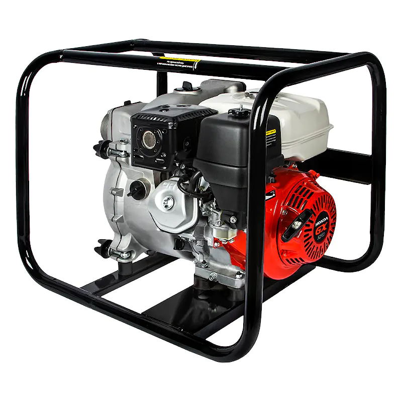 Грязевая мотопомпа оборудована бензиновым 4-тактным двигателем японской компании Honda GX270. Его объем составляет 270 см³. Такой мотор выдерживает высокие нагрузки без потери производительности. Это позволяет применять мотопомпу не только на дачном участке, но и в профессиональной сфере деятельности. Например, бензиновая помпа подойдет коммунальным службам, строителям или нефтяникам.