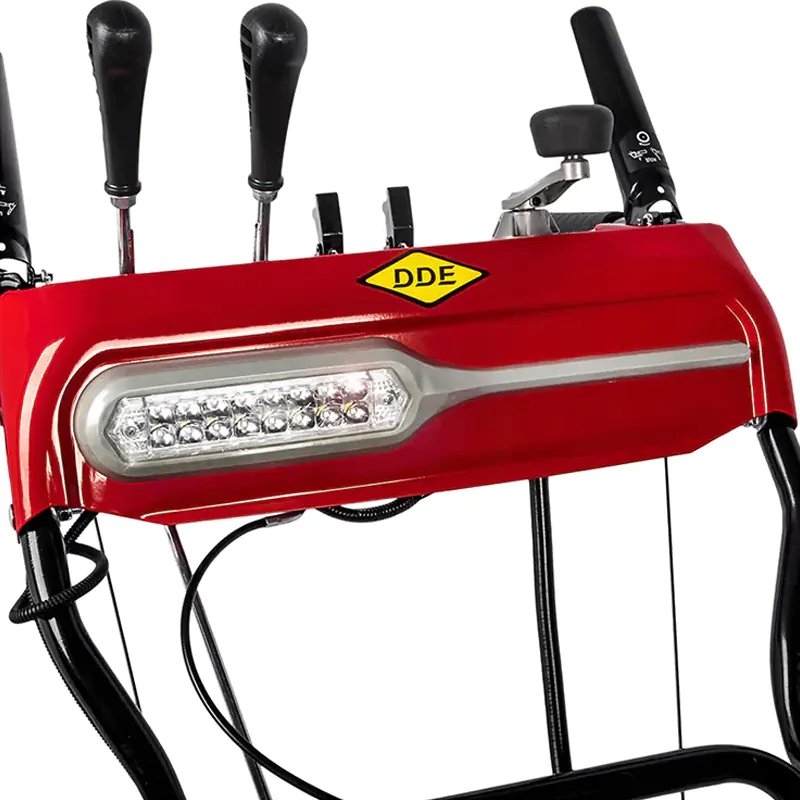 Яркое освещение незаменимо для работы в сумерках. Благодаря подогреву рукояток со снегоочистителем комфортно работать на морозе. Все элементы управления, включая регулировку дальности и направления выброса снега, удобно расположены под руками, на панели оператора.