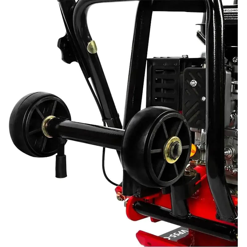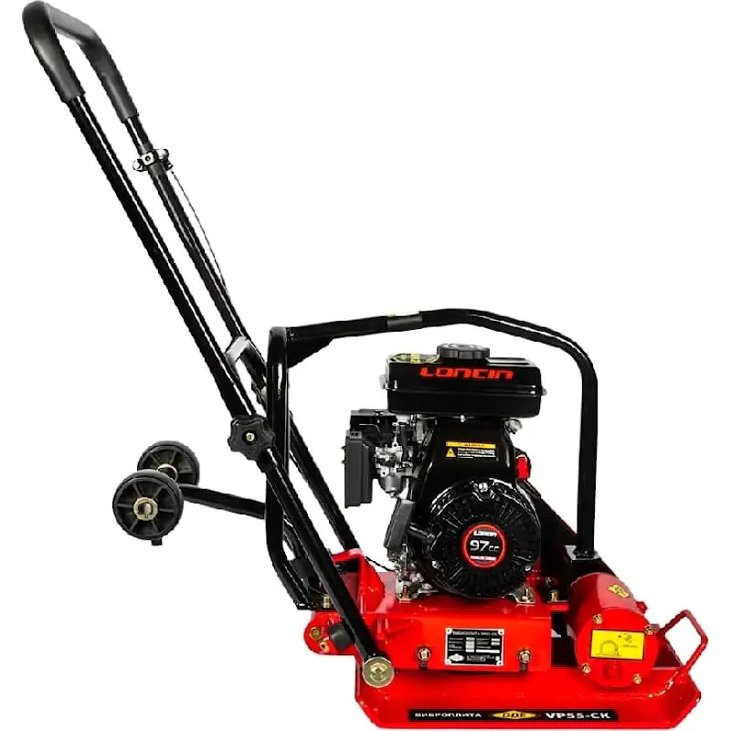 Бензиновая виброплита позволит быстро утрамбовать сыпучий материал: гравий, щебень, песок, а также различные почвенные смеси. Аппарат оснащен плитой основания размером 495 х 320 мм. Это оптимальный размер для обработки участка площадью 250 м² за один час. За счет компактной конструкции трамбовкой удобно обрабатывать узкие дорожки, траншеи, места вдоль стен, а также участки возле фундаментов. Аппарат поможет отремонтировать определенный участок асфальтового покрытия, благоустроить придомовую территорию, тротуары, садовые дорожки, а также создать фундамент. В конструкции виброплиты предусмотрены откидные колеса. Они позволяют удобно перемещать данную модель до места работы. Вам не придется снимать колеса после транспортировки, т.к. их можно компактно сложить.