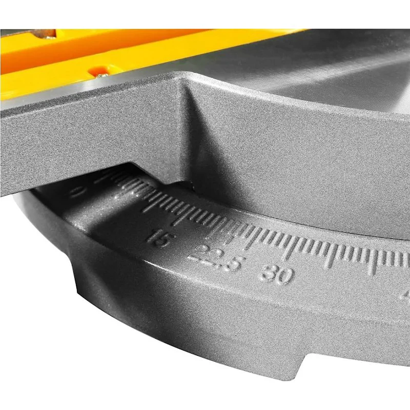 Пила DEKO DKMS2200-255 Laser имеет прочную конструкцию с литой алюминиевой подошвой. Специальные отверстия помогают надежно зафиксировать инструмент на столе. Для управления пильным диском и переноски станка предусмотрена прочная пластиковая рукоять. Фиксация пильной головки обеспечивает безопасность во время транспортировки инструмента.