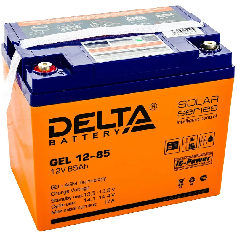 Батарея аккумуляторная Delta GEL 12-85 используется в системах солнечной и ветроэнергетики, источниках бесперебойного питания и резервного энергоснабжения, объектах связи. Батарея изготовлена по технологии AGM+GEL.