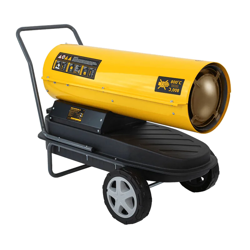 Дизельная тепловая пушка Denzel DHG-30 мощностью 30 кВт предназначена для использования в нежилых помещениях площадью до 300 м². Модель подойдет для размещения в цехе, ангаре или на складе. Для простого перемещения предусмотрены транспортировочные колеса и рукоятка.