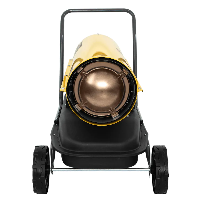 За счет теплоотражающего элемента и прямого типа нагрева дизельная теплопушка обеспечивает не только быстрый, но и равномерный прогрев. Благодаря этому она подходит не только для помещений, но и для сушки различных материалов на строительной площадке. В качестве топлива может использоваться любой вид дизеля: летний, арктический или зимний. Большой топливный бак и экономный расход топлива позволяют использовать пушку без дозаправки в течение 9 ч.