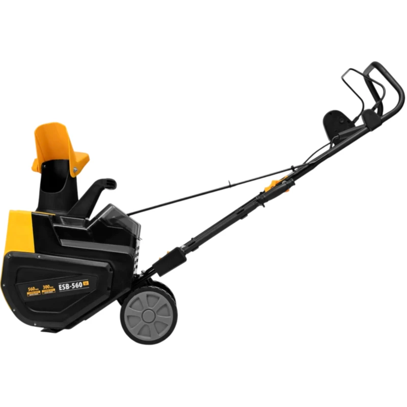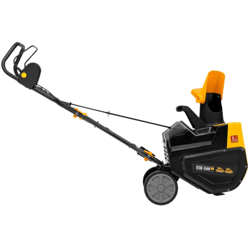 Аккумуляторная снегоуборочная машина Denzel ESB-560Li 97639 с металлическим шнеком и зарядным устройством (ЗУ) в комплекте работает от 2 аккумуляторов 5 А·ч суммарным напряжением 40 В и обеспечивает ширину захвата 560 мм. Дальность выброса снега регулируется при помощи дефлектора и достигает 8 м. Машина не зависит от наличия розетки, что позволяет работать даже на удаленных участках. Снегоуборщик поможет расчистить тротуар, дорожку на дачном участке, площадку перед гаражом или другую небольшую ровную территорию.