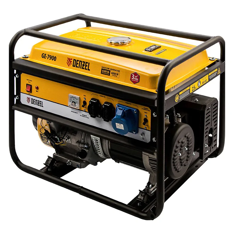 Бензиновый генератор Denzel GE-7900 предназначен для питания потребителей суммарной мощностью до 6 кВт. Модель обладает встроенным блоком AVR, который защищает от скачков напряжения, позволяя подключать чувствительную технику.