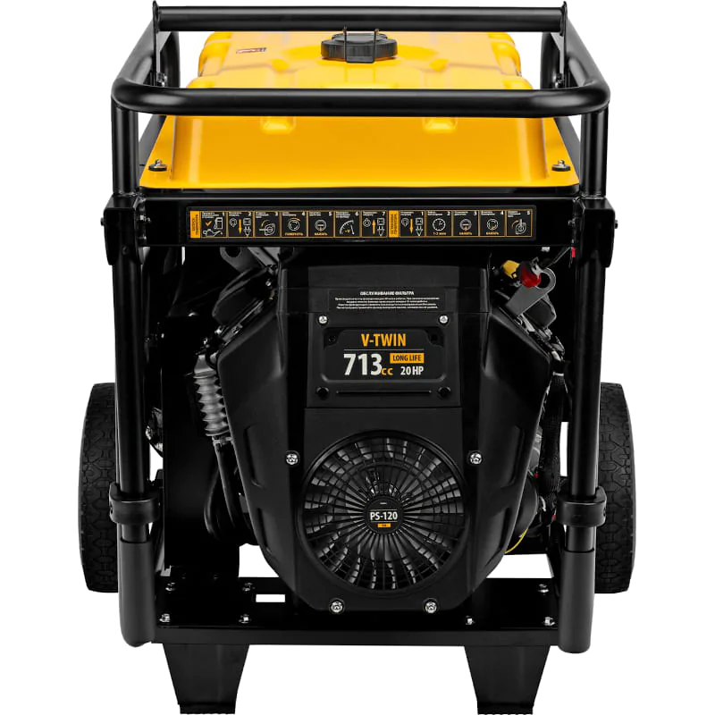 - Мобильность — колеса и ручки упрощают перемещение генератора по рабочей площадке.