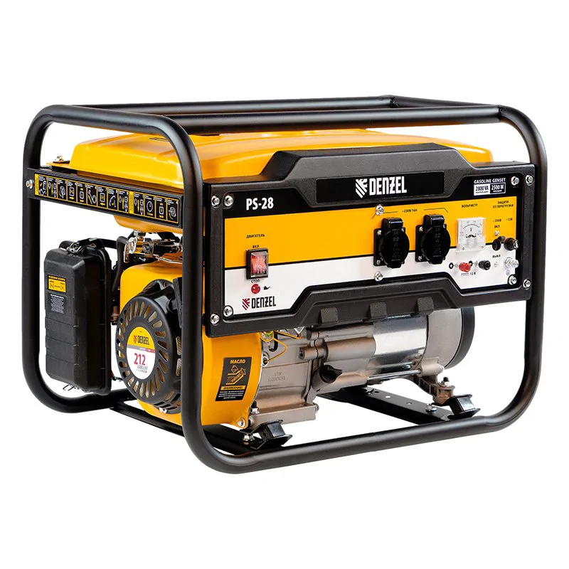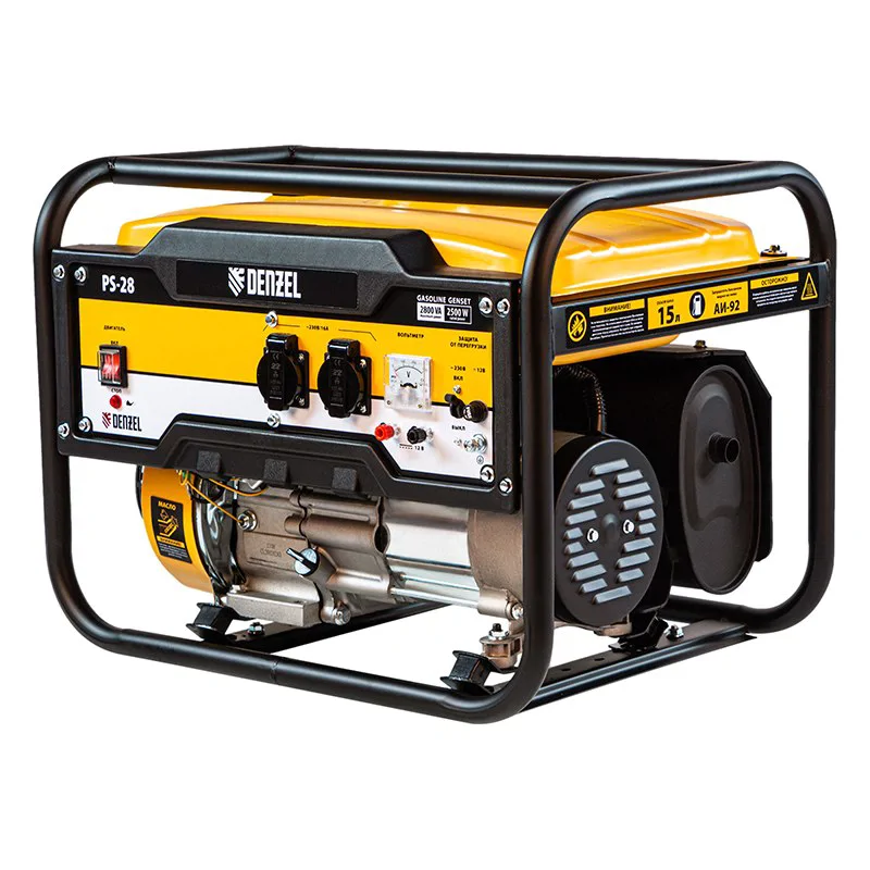Бензиновый генератор Denzel PS-28 подходит для использования в качестве резервного источника питания для одного или нескольких инструментов суммарной мощностью 2,5 кВт. Модель обладает малым весом, а потому её удобно брать с собой на рыбалку, пикник, на дачу, стройку, в торговую точку и т.д.
