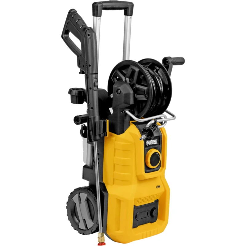 - Удобное использование — функциональный барабан подключен к магистрали высокого давления, поэтому вы можете разматывать и убирать шланг на барабан, не отсоединяя его от мойки.
