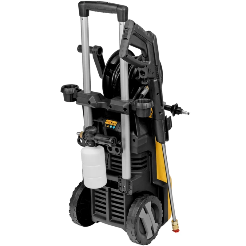 - Максимально комфортное передвижение — длина шнура питания составляет 5 м, длина шланга высокого давления увеличена до 8 м.