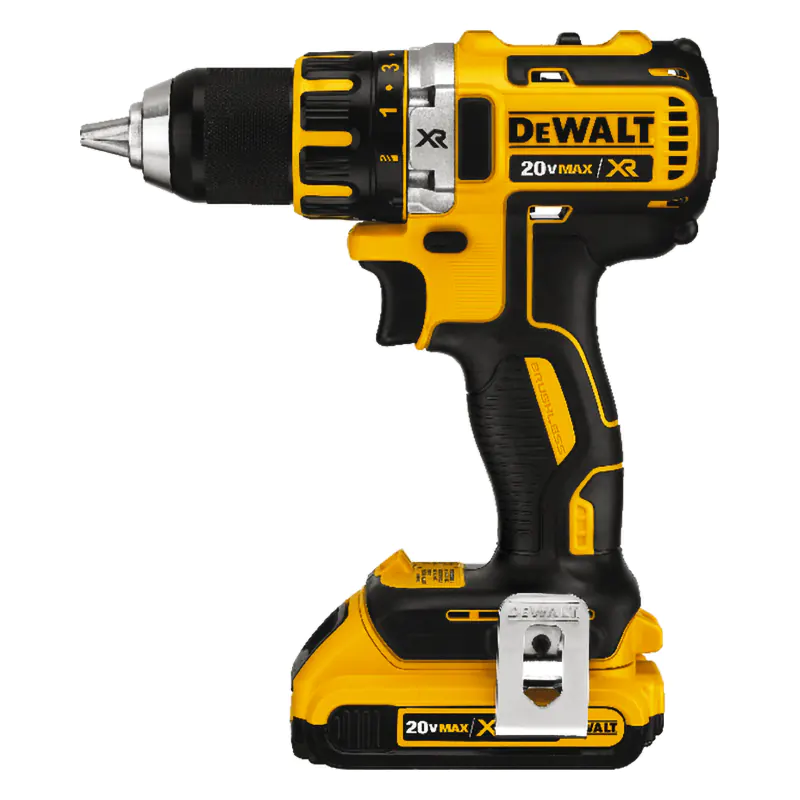 В нижней части аккумуляторного шуруповерта DeWalt DCD790D2 расположена клипса. Она позволит крепить дрель на ремень для удобной переноски по рабочему помещению.
