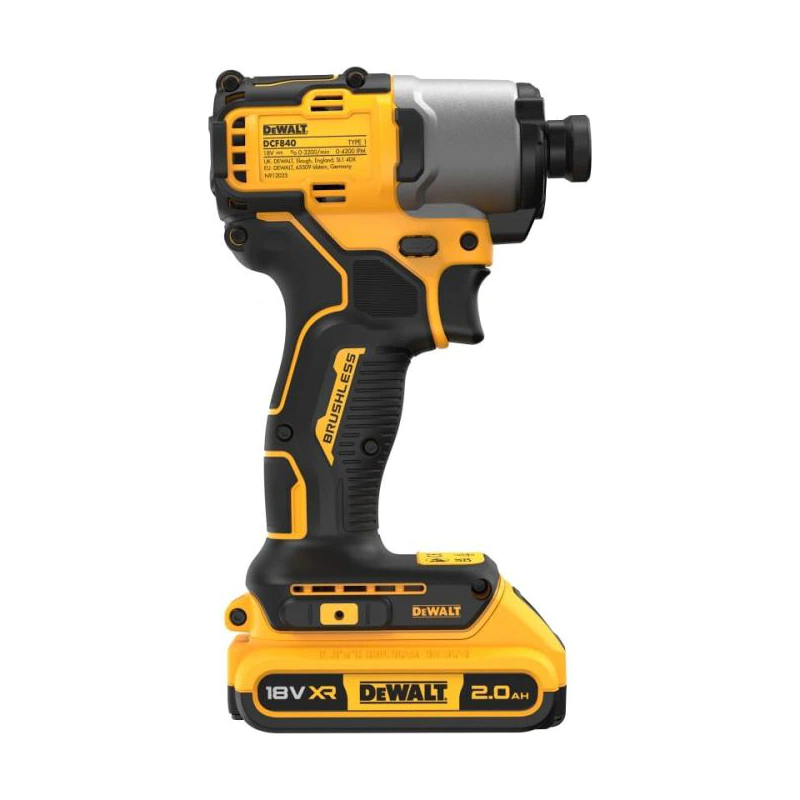 Бесщеточный ультракомпактный импульсный шуруповерт Dewalt DCF840NT-XJ обеспечивает превосходную маневренность в ограниченных пространствах. Бесщёточный двигатель увеличивает время работы на одном цикле заряда до 50% и повышение мощности на 20% по сравнению со стандартным щёточным двигателем.