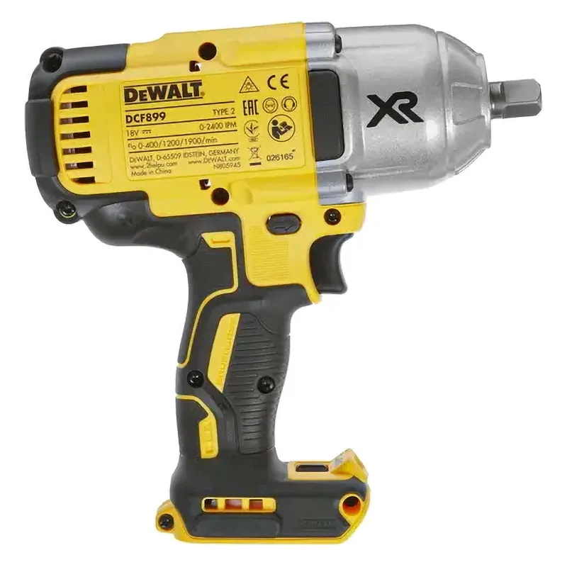 Импульсный гайковерт DeWALT DCF899N выдает 2400 уд/мин и обеспечивает крутящий момент до 950 Нм, что подойдет для работы в автосервисе или ремонта техники. Высокий максимальный крутящий момент 1625 Нм позволит откручивать гайки, которые туго затянуты или окислившейся крепеж.