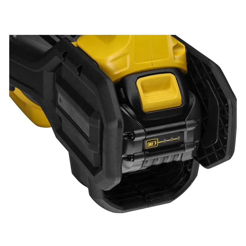 Аккумуляторный воздуходув DEWALT DCMBA572N оборудован кнопкой регулировки скорости воздуха, что позволяет убирать как сухие листья, так и ветки. Благодаря работе с аккумулятором вы можете использовать инструмент в нужном месте без привязки к источнику питания и вредных выхлопов.