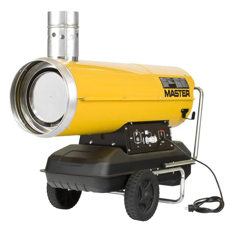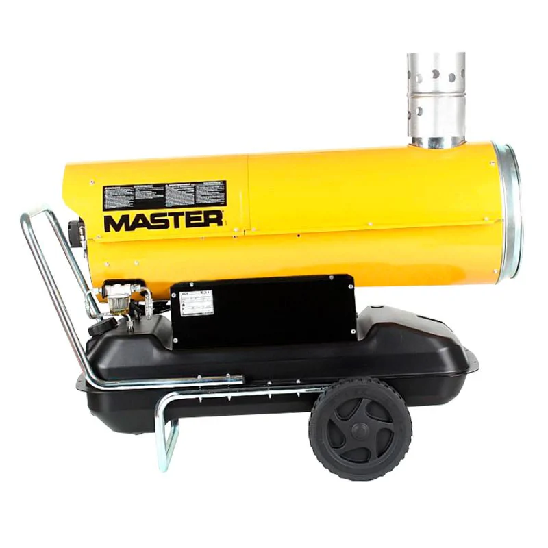 Дизельная тепловая пушка Master BV 290 E обладает мощностью обогрева 81 кВт, а потому выдает мощный воздушный поток 3300 м³/ч. Модель удобно перемещать по рабочему помещению за счет тележки с транспортировочной ручкой и колесами.