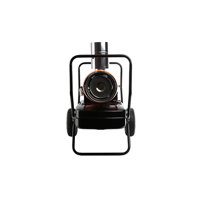 Дизельная тепловая пушка с отводом Aurora TK-80 ID с тепловой мощностью 25 кВт предназначена для нагрева воздуха и просушки предметов в проветриваемых помещениях. Наличие дымохода для отведения продуктов горения позволяет использовать теплогенератор при постоянном присутствии людей. Камера сгорания работает на дизельном топливе или керосине. Для функционирования мощного вентилятора, термостата и электронных датчиков устройство подключается к сети с напряжением 220 В.