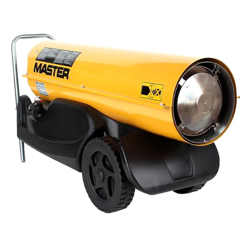 Дизельная тепловая пушка Master B 180 мощностью 48 кВт позволит быстро обогреть помещение площадью до 400 м². Для удобного перемещения техники предусмотрено шасси с транспортировочными колесами и рукояткой.