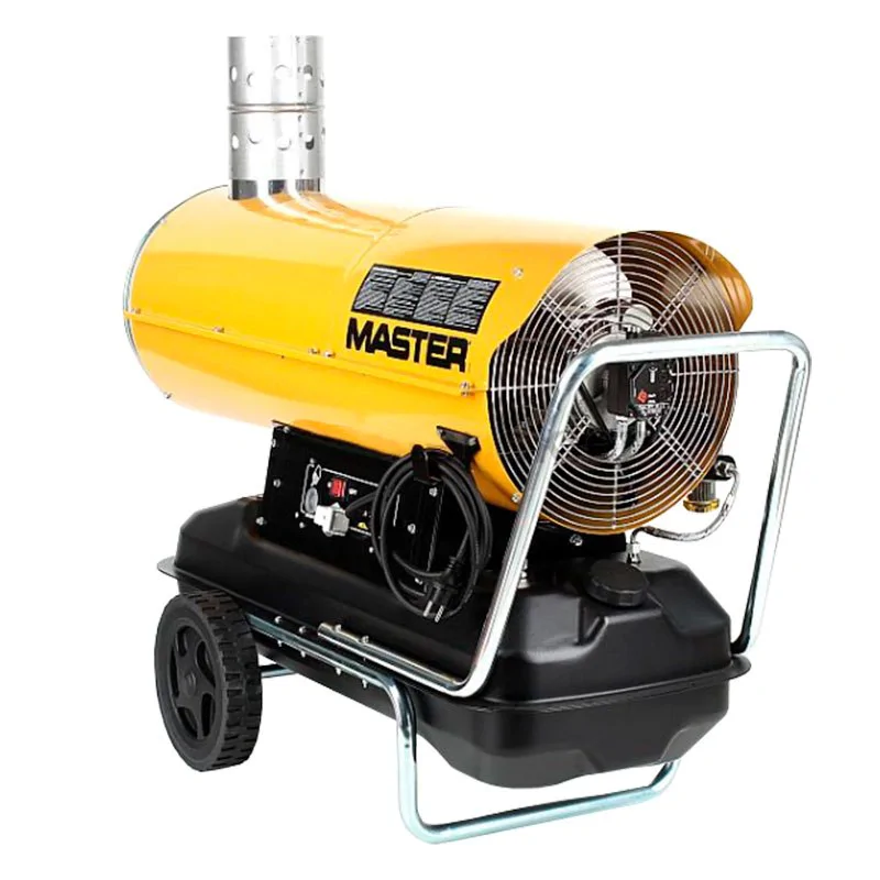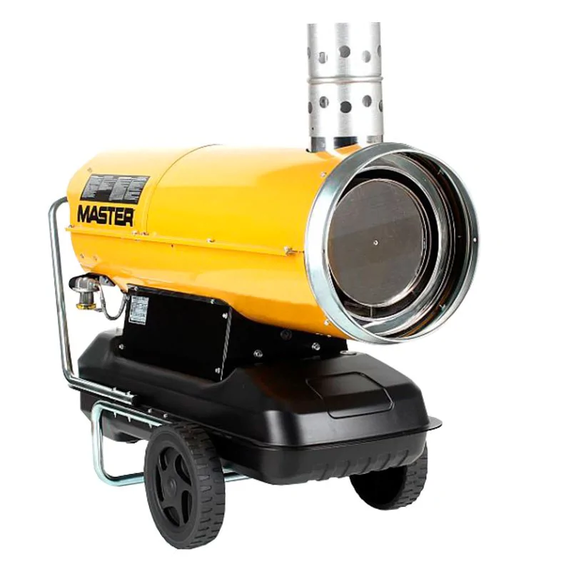 Дизельная тепловая пушка Master BV 170 E обеспечивает на выходе высокую температуру до 98°С и скорость воздушного потока до 1800 м³/ч. Для простого перемещения по рабочему помещению эта модель оборудована тележкой с колесами и рукояткой.