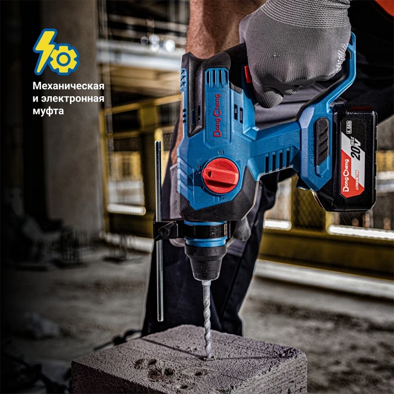 Аккумуляторный перфоратор DongCheng DCZC22 (TYPE BM) — универсальный инструмент для сверления, ударного сверления и долбления. Подходит как для профессиональных строительных задач, так и для домашнего ремонта. Оснащён бесщёточным двигателем и работает от аккумулятора, что обеспечивает автономность и мобильность при выполнении работ. Модель совместима с оснасткой типа SDS-plus и поддерживает три режима работы, позволяя адаптировать инструмент под разные материалы: бетон, металл, дерево.