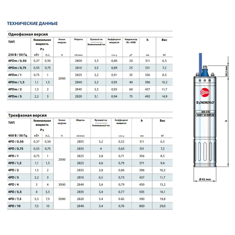 В однофазной версии 4SR-PD конденсатор находится внутри тары.