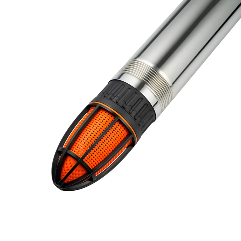 Насос для колодца опускается в скважину или колодец на тросе на глубину не менее 1 м от дна. При включении вода охлаждает двигатель, проходя вокруг его корпуса, а термореле отключает насос при перегреве или сухом ходе. Съемный фильтр легко демонтируется для очистки без инструментов — достаточно открутить сетку от адаптера. Насос работает с водой температурой от +1ºC до +35ºC. Устройство подключается к сети 220 В (при скачках напряжения рекомендуется стабилизатор). Модель подходит для круглогодичного водоснабжения 3–4 точек разбора одновременно.