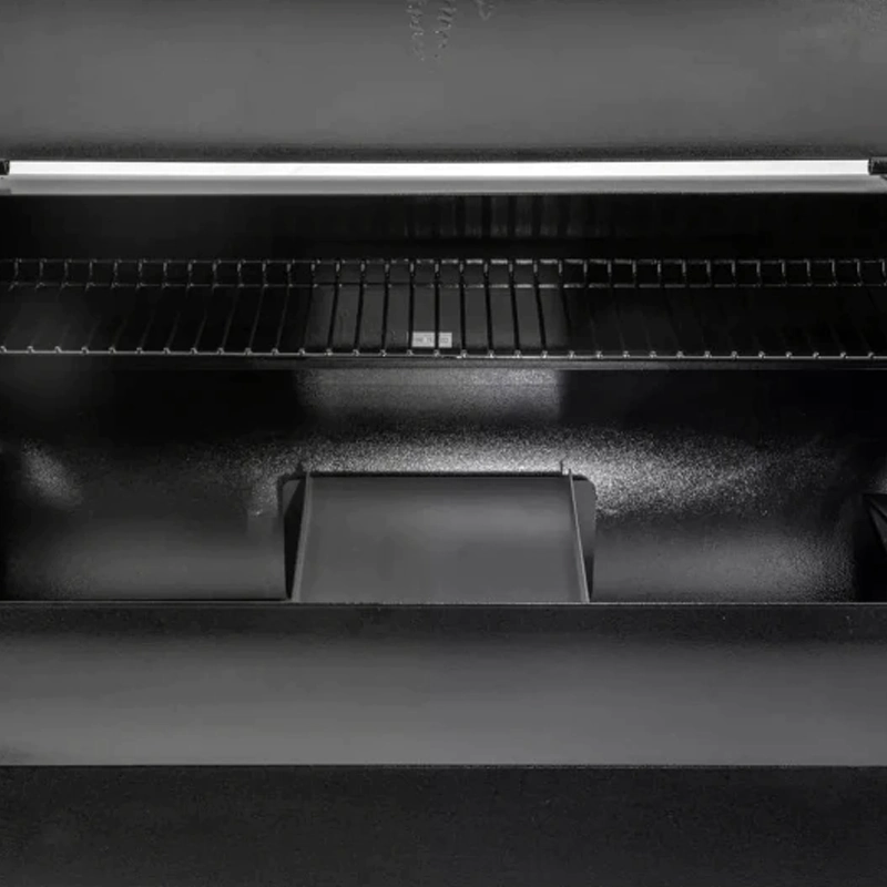 Система подачи пеллетов автоматизированная. Вы засыпаете гранулы, а цифровой механизм гриля постепенно отправляет их в топку, поддерживая заданную температуру.