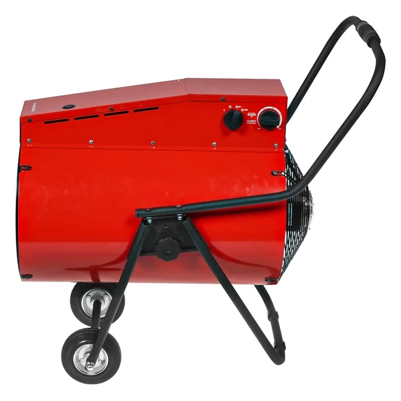 Расход воздуха достигает 1600 м³/ч, что позволит прогреть помещение площадью до 220 м² всего за несколько минут. Кроме того, благодаря трубчатому электронагревателю ТЭН из нержавеющей стали, обогрев происходит быстрее, чем для керамических аналогов. Устройство оптимально подходит для гаражей, ангаров, складских помещений и других подобных пространств.