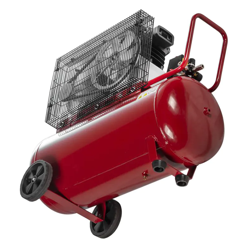 Ременной компрессор ELITECH КПР 100/360/2.2 легко перемещать по рабочей площадке. Для этого он оснащен парой колес и длинной транспортировочной рукояткой. А для устойчивого положения во время использования у него есть передняя опора с двумя виброгасителями.