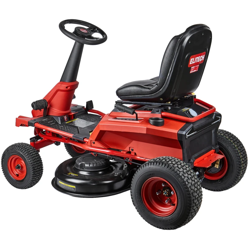 Аккумуляторная газонокосилка с сиденьем оснащена свинцово-кислотным аккумулятором напряжением 48 В и ёмкостью 50 Ач и предназначена для кошения травы на систематически обрабатываемой и предварительно подготовленной поверхности (газон, лужайка, поле для игр и т.п.) с уклоном не более 15 градусов, на участках до 4000 м2, в стандартной комплектации с выбросом скошенной травы вбок, либо кошением травы в режиме мульчирования, когда скошенная трава является удобрением для вновь растущей.