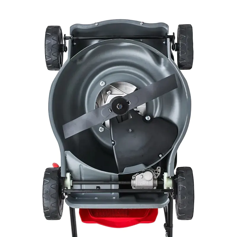- Центральная регулировка высоты скашивания осуществляется с помощью удобной ручки.