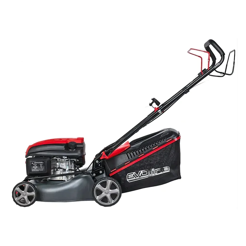 - Бензиновая газонокосилка EVOline LMG 42 CS обладает привлекательным дизайном и простотой использования, что делает её идеальным помощником в саду.