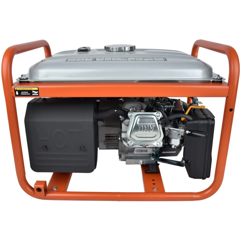 Генератор имеет электрический тип запуска и работает на бензиновом топливе. Имеются две розетки с защитными крышками, а также датчики и индикаторы на передней панели, отображающие состояние прибора.