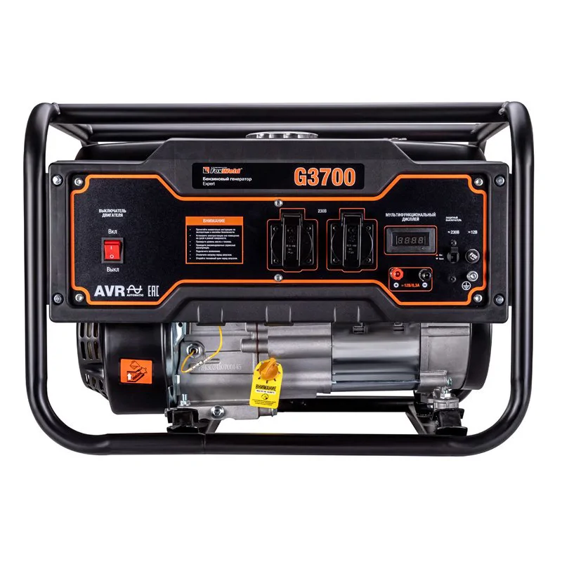 Бензиновый генератор FoxWeld Expert G3700 – бытовая модель для питания домашней техники или строительных инструментов мощностью до 2,8 кВт. Аппарат способен работать до 12 ч без дозаправки за счет вместительного топливного бака.
