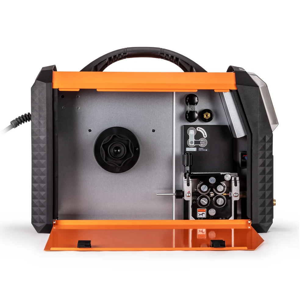Следить за работой аппарата и текущими настройками помогает большой LCD экран. Система коррекции коэффициента мощности способствует экономному потреблению электроэнергии и позволяет работать при пониженном напряжении, от 160 В.