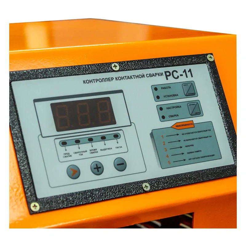 - Контроллер позволяет бесступенчато регулировать: сварочный ток, время сварки, время спада тока;