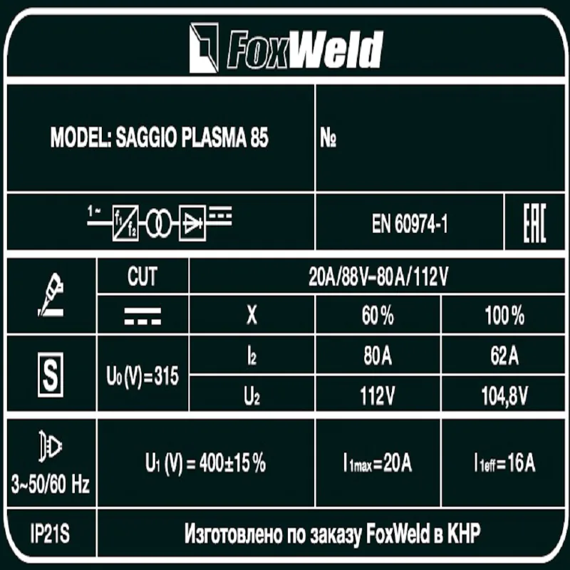 FoxWeld SAGGIO PLASMA 85 аппарат плазменной резки 9043