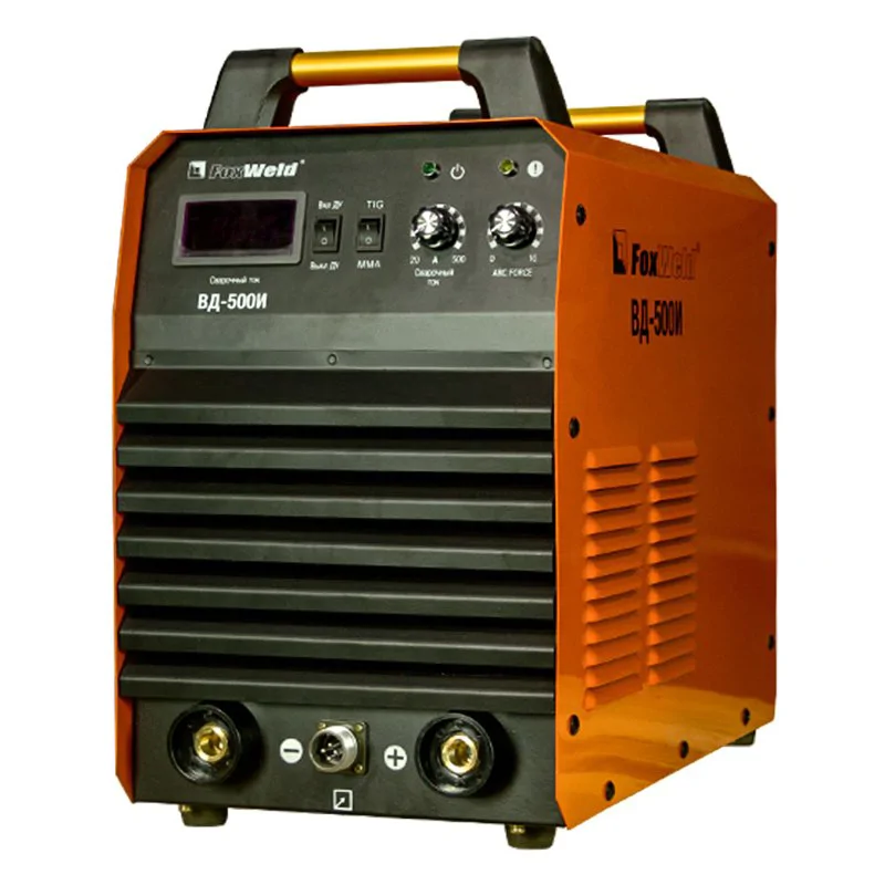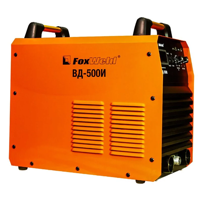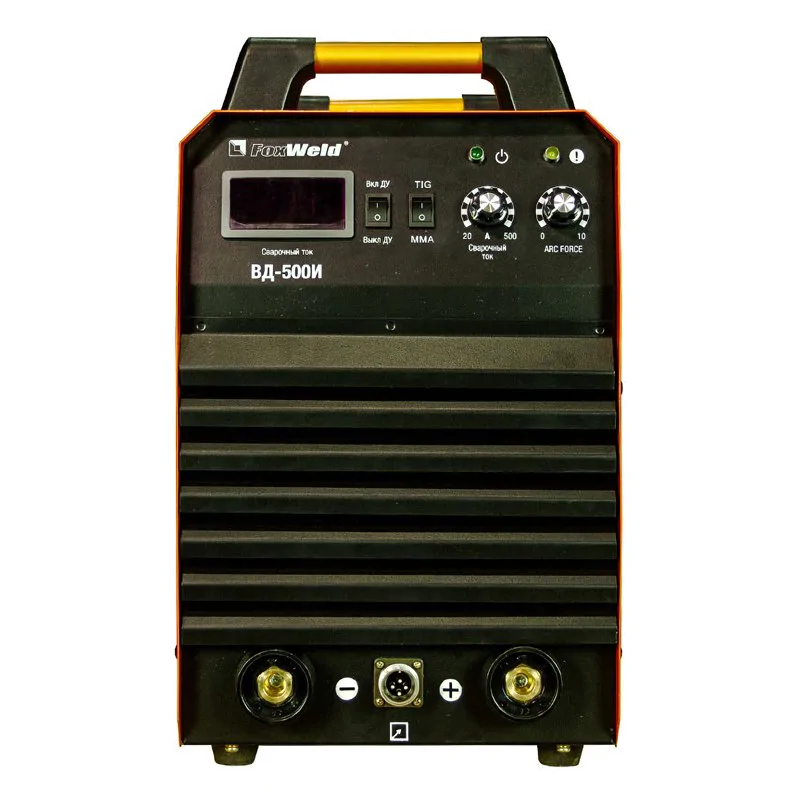 Сварочный аппарат FoxWeld ВД-500И отлично зарекомендовал себя благодаря надежности и эффективности. Компактное устройство с двумя ручками в верхней части корпуса удобно переносить и брать с собой на объекты. Сварочник 2 в 1 работает в режимах ручной дуговой и аргонодуговой сварки с контактным зажиганием дуги. Аппарат подключается к питающей сети с напряжением 380 В и работает в широком диапазоне сварочного тока от 20 до 500 А. Возможность подсоединения пульта ДУ позволяет выполнять регулировку параметров с места проведения сварки.